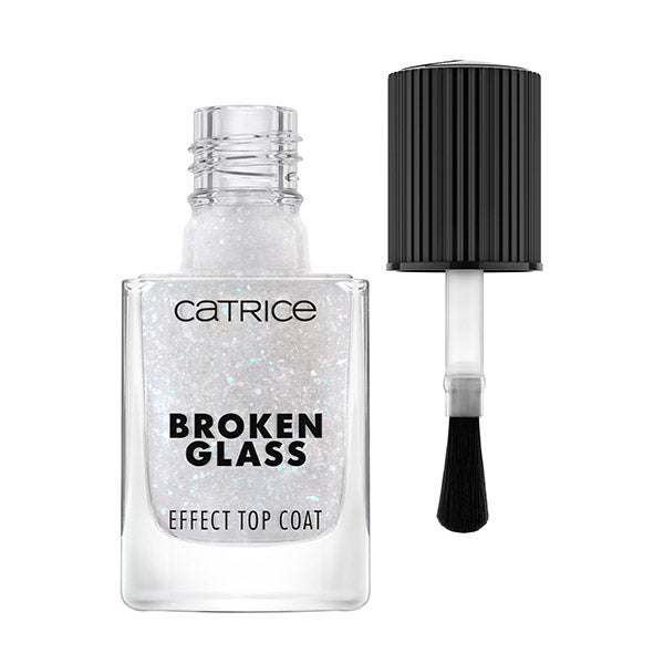O top coat Broken Glass Effect 050 Sparkling Reflection da Catrice é uma incrível adição à sua manicure. Projetado para ser aplicado sobre qualquer esmalte de unhas normal. Este top coat contém grandes partículas de glitter de prata branca que criam a ilusão de vidro quebrado, oferecendo uma textura ousada e um chamativo efeito 3D. Transforma qualquer esmalte de unhas com esta fórmula única e transparente que adiciona profundidade e dimensão, proporcionando às suas unhas um aspecto sofisticado.
