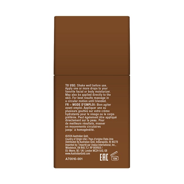 Aproveite o seu brilho de verão com as Gotas Bronzeadoras da Australian Gold®. Mime a sua pele com este sérum rico em antioxidantes que hidrata e nutre profundamente, deixando-a com um lindo brilho quente e bronzeado.