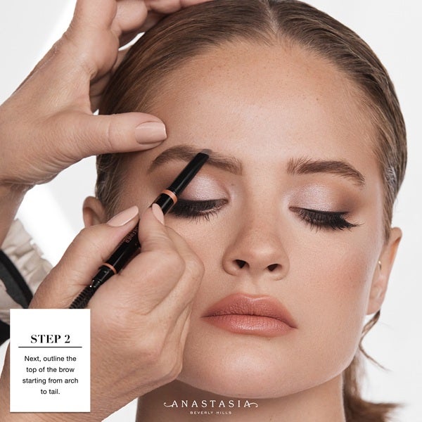 • Comece expondo apenas uma pequena quantidade do produto (aproximadamente 2-3 milímetros), que permite um controle máximo do lápis e evita a sobreextensão ao aplicar o produto. Lembre-se de que todos os produtos de Anastasia Beverly Hills são altamente pigmentados, portanto, é necessária pouca pressão.