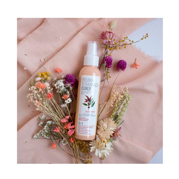 Bruma Vitaminada curly que nutre e hidrata, reduz o frizz e a quebra, cabelo macio e luminoso, favorece a escovação correta e hidrata profundamente.