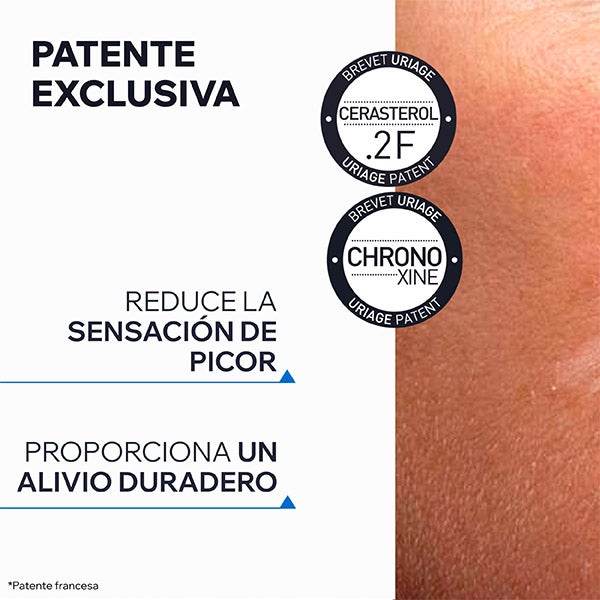 Atua sobre a barreira imunológica graças a duas patentes exclusivas dos Laboratórios Dermatológicos de Uriage: TLR2-REGUL e CHRONOXINE, que ajudam a limitar a coceira e proporcionam um alívio duradouro.