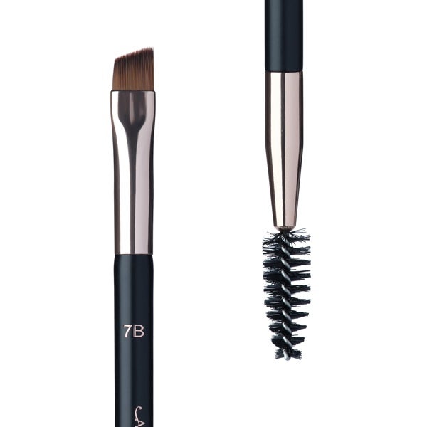Pincel de dupla extremidade com ângulo é um pincel para sobrancelhas de cerdas sintéticas, ideal para aplicar maquiagem de sobrancelhas em pó e produtos com emolientes. Use a extremidade do pincel para criar traços precisos semelhantes aos dos pelos e a extremidade da escova personalizada para esfumar o produto e obter um acabamento suave e de aspecto natural. As suaves cerdas sintéticas deste pincel de dupla extremidade formam uma borda superfina que permite preencher e dar forma às sobrancelhas com precisão, sendo ideal para esfumar o Brow Powder Duo para uma aplicação suave.