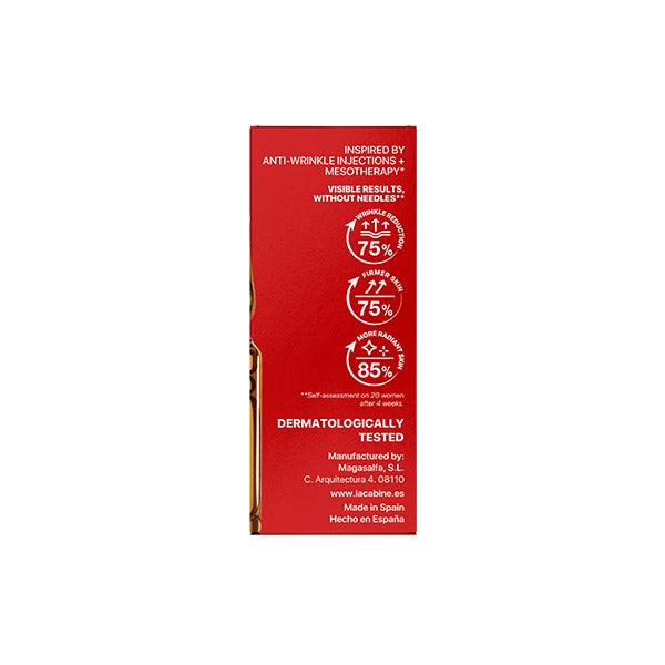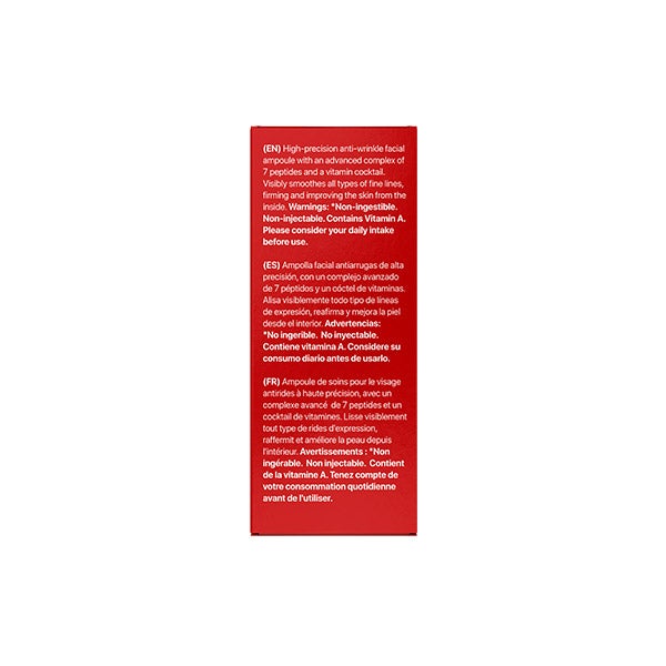 Ampola facial antirrugas de alta precisão, com 7 peptídeos tensores e um coquetel de vitaminas.
