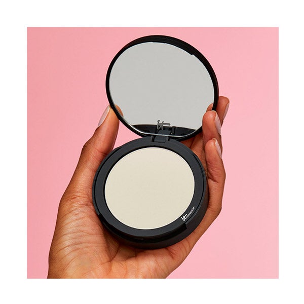 Com sua escova IT COSMETICS favorita, aplique o pó translúcido realizando suaves passadas controlando o movimento para que o produto adira à pele. Pode ser usado sobre a pele limpa e sobre a pele maquiada.