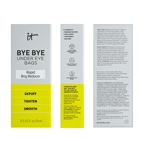 Após 10 anos de pesquisa, a iT Cosmetics revela que em apenas 15 minutos desincha, firma e suaviza as bolsas - como um efeito lifting temporário em um único frasco.