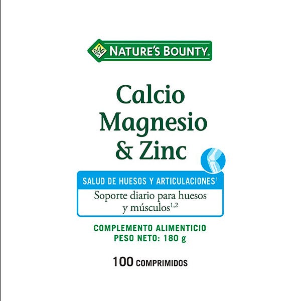 O suplemento alimentar Cálcio Magnésio & Zinco da Nature’s Bounty® é uma combinação de três minerais essenciais para ossos e músculos, em comprimidos revestidos oblongos confortáveis e fáceis de engolir.