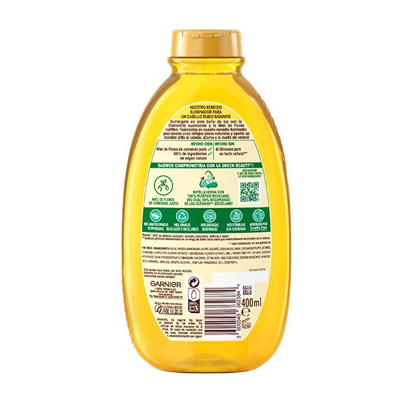 Garnier Ultra Suave Camomila e mel de flores shampoo iluminador para crianças.
