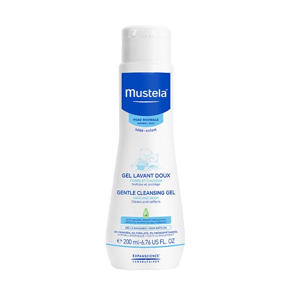 - Gel de banho suave 200ml : gel-xampu que limpa suavemente o corpo e o cabelo.