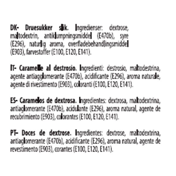 ES- Caramelos de dextrosa. Ingredientes: dextrosa, maltodextrina, antiaglomerante