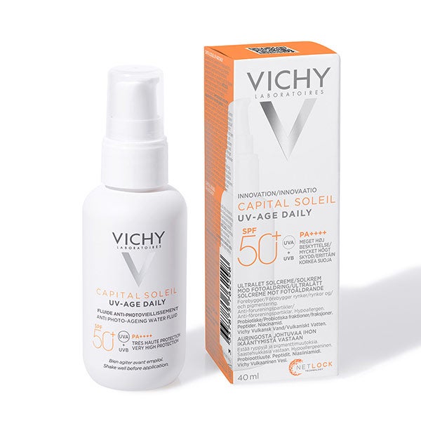 UV-AGE DAILY é um fotoprotetor diário facial que proporciona muito alta proteção contra os raios UVB e UVA para prevenir os sinais do fotoenvelhecimento como manchas e rugas.