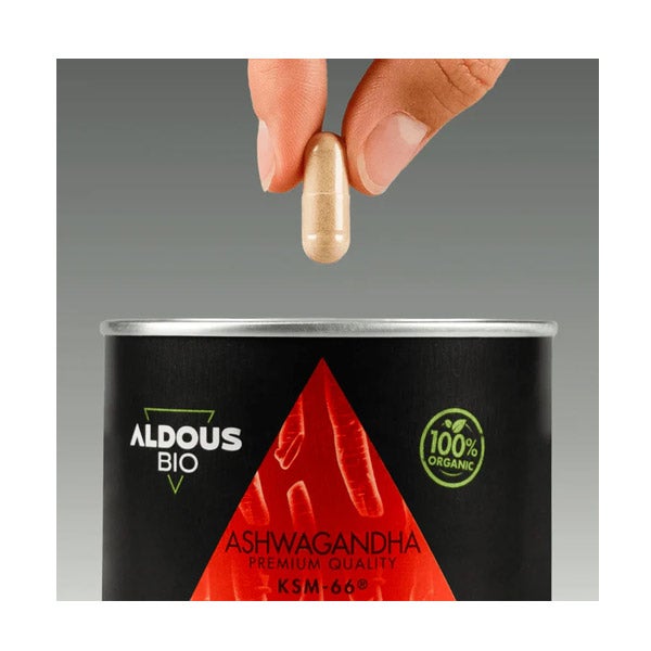O Extrato de Raiz de Ashwagandha KSM-66 ® Aldous Bio é um suplemento alimentar com Certificação Ecológica Oficial cultivado com água de grande pureza e livre de resíduos tóxicos provenientes de pesticidas, fertilizantes sintéticos, aditivos e conservantes.