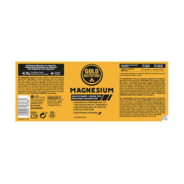 Óxido de magnesio, bisglicinato de magnesio, cápsula vegetal (hipromelosa E464)