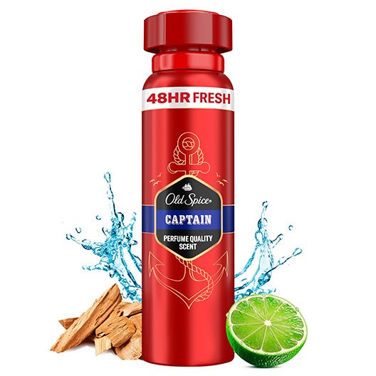 O desodorante corporal em spray Old Spice Captain para homens combate até os odores mais fortes com um bom cheiro avassalador.