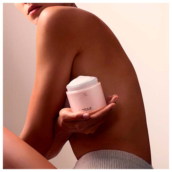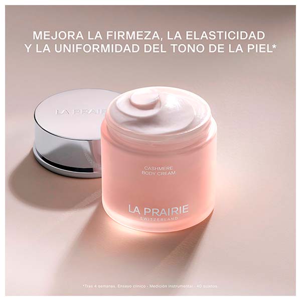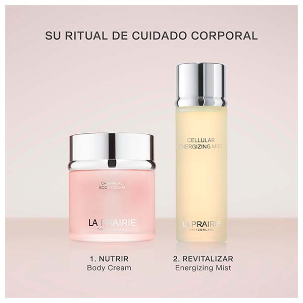 Cashmere Body Cream é enriquecida com o Exclusive Cellular Complex™ da La Prairie, que favorece a renovação celular para uma experiência energizante, um peptídeo semelhante ao cashmere e um complexo hidratante. Ao aplicá-la, proporciona uma onda de hidratação que acalma, suaviza e conforta a pele. Este creme suntuoso atua não apenas na superfície, mas também no interior das camadas da pele, para uma experiência sensorial luxuosa. Ao atuar sobre três mecanismos chave da hidratação, restaura a flexibilidade e realça o conforto.