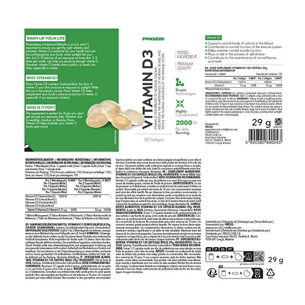 Vitamin D3 da Prozis contém colecalciferol, a forma de vitamina D produzida pela nossa pele como resposta à exposição à luz solar. Sim, a principal fonte natural de vitamina D é o sol! Esta substância também é encontrada no peixe e nos ovos, embora a produção de vitamina D no organismo seja desencadeada a partir da nossa exposição à luz ultravioleta do sol. Vitamin D3 da Prozis é uma maneira alternativa de fornecer este suplemento.