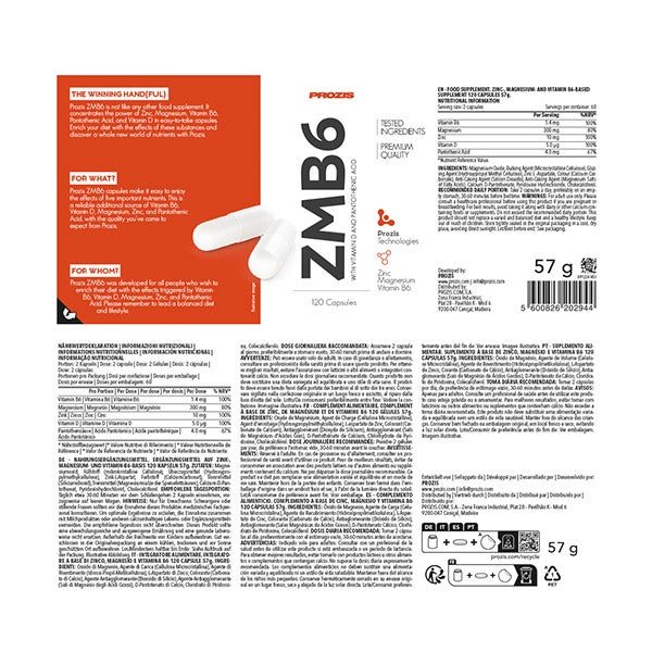 ZMB6 da Prozis foi desenvolvido para todas as pessoas que desejam potencializar sua dieta com os efeitos da vitamina B6, da vitamina D, do magnésio, do zinco e do ácido pantotênico. Lembre-se de seguir uma dieta e um estilo de vida equilibrados.