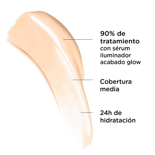 En solo 4 semanas, esta base de maquillaje clínicamente testada* soluciona las principales preocupaciones de tu piel al mejorar visiblemente su brillo, textura y suavidad, ocupándose también de unificar el tono de la piel. Además, brinda 24 horas de hidratación para un brillo saludable instantáneo y esa apariencia de ir sin maquillar, pero maquillada.