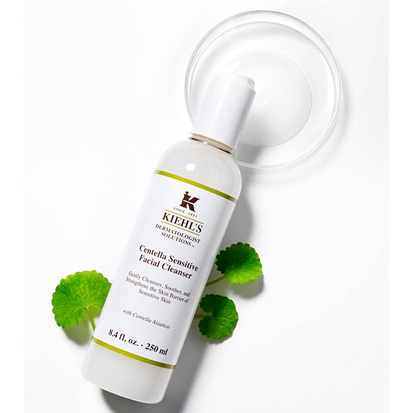 Centella Sensitive Facial Cleanser da Kiehl's, nosso limpador facial formulado com extrato de centella asiática e um pH equilibrado, é de enxágue opcional. Remove a sujeira, a gordura e as impurezas enquanto hidrata, condiciona e reforça a barreira das peles sensíveis.