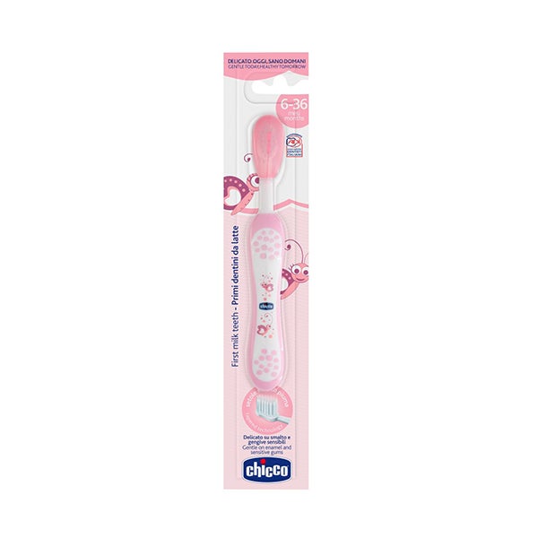 O escova infantil da Chicco está desenhada para facilitar a higiene oral do pequeno. Delicada com as gengivas. Com cerdas ultra finas com acabamento efeito pluma. De 6 a 36 meses. Cor rosa.