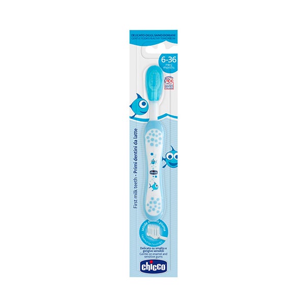 A escova infantil da Chicco é projetada para facilitar a higiene oral do pequeno. Delicada com as gengivas. Com cerdas ultrafinas com acabamento efeito pluma. De 6 a 36 meses. Cor azul.