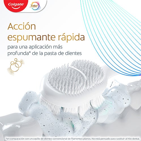 Escove seus dentes com a escova Colgate Espuma de Limpeza. Esta escova manual foi projetada especificamente para a prevenção ativa, pois ajuda a combater a principal causa¹ das cáries, a placa, os problemas de gengiva, o mau hálito, o acúmulo de tártaro e as manchas superficiais. Esta escova de dentes proporciona uma ação espumante rápida para uma aplicação mais profunda² do creme dental por toda a boca. E graças às suas cerdas de ponta fina, esta escova dental manual alcança mais profundamente² ao longo da linha das gengivas e entre os dentes. Além disso, possui 2 vezes mais cerdas³ para uma alta densidade. Obtenha a prevenção que você precisa para manter seu sorriso saudável com Colgate.