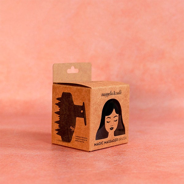 O Escova Massageadora da Nuggela & Sulé, ajuda a revitalizar o cabelo pois proporciona uma massagem terapêutica relaxante, que estimula a circulação sanguínea e a nutrição capilar. Seu uso também gera uma microexfoliação para sanar e eliminar células mortas que podem gerar microorganismos nocivos. Também ajuda na limpeza profunda das raízes do cabelo e sua massagem alivia coceiras, desconforto, relaxa o couro cabeludo e os músculos. Seu design é ergonômico e sua magia reside no duplo nível de cerdas de silicone dispostas em uma dupla bateria de atuação e ponta triangular que não danifica o couro cabeludo.