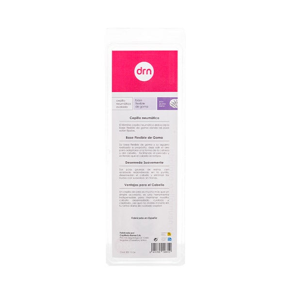 Sua base flexível de borracha e seu orifício feito de propósito, deixa sair o ar para se adaptar à forma da cabeça e do cabelo, facilitando o penteado e evitando que o cabelo se quebre.