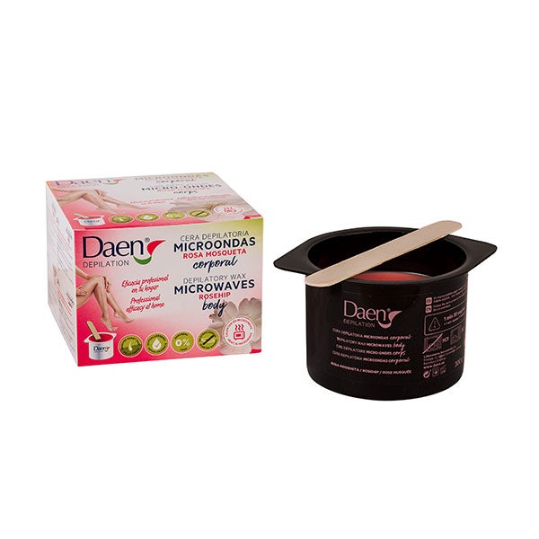 Cera depilatória de Daen rosa mosqueta para micro-ondas com ingredientes naturais à base de resinas.