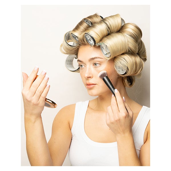 Prenda os bobes no lugar e dê um último jato de calor com um secador de cabelo.