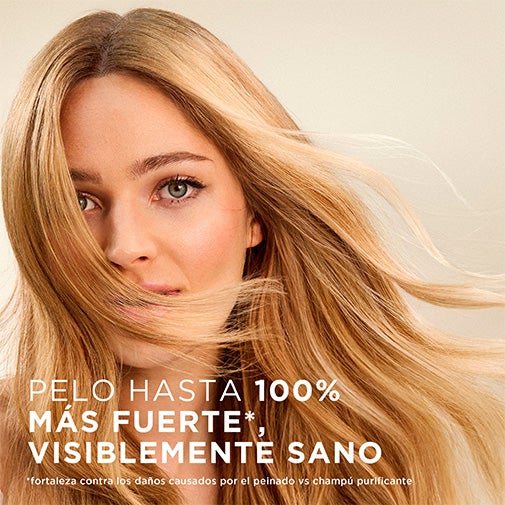 O SEGREDO PARA UM CABELO VISIVELMENTE MAIS SAUDÁVEL: O shampoo Repara e Protege ajuda a conseguir um cabelo até 100% mais forte e saudável em comparação com o desgaste causado pelo penteado em comparação com o shampoo Volume/Purificante