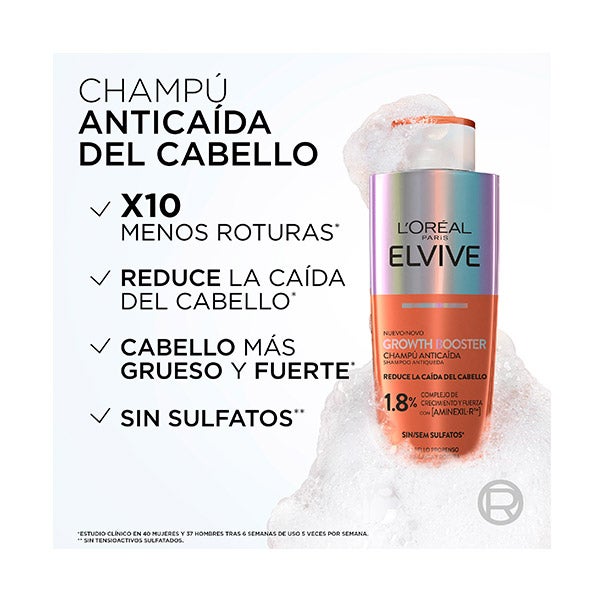 Descubra o novo protocolo de crescimento de cabelo clinicamente testado de L'Oréal Paris Elvive Growth Booster, ideal para combater a queda e fortalecer o cabelo. Sua fórmula com 1,8% de Complexo de