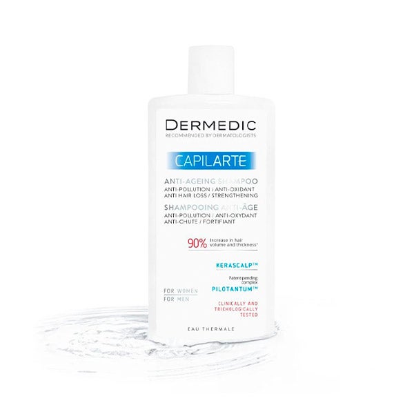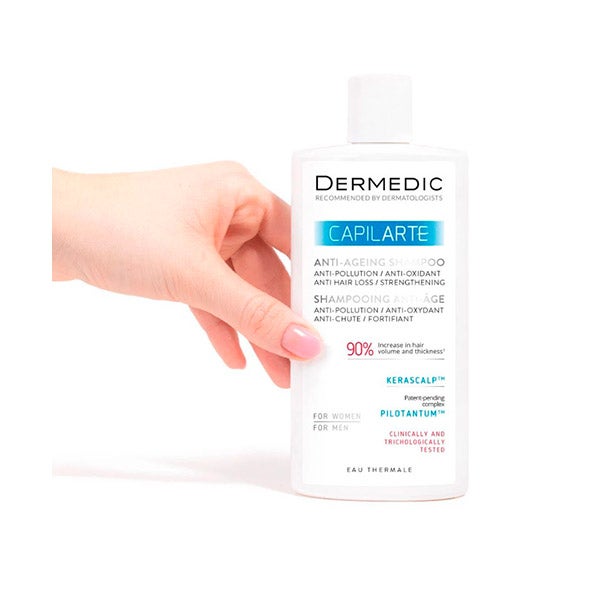 CAPILARTE Shampoo antipoluição / antioxidante combate os sinais de envelhecimento do folículo e do fio capilar. Previne a degradação das células-tronco e a miniaturização dos folículos capilares, contrabalançando assim a queda de cabelo, o afinamento e o enfraquecimento da estrutura do fio capilar, bem como retarda o aparecimento de cabelos brancos. Contém o inovador complexo Pilotantum®, pendente de patente, que, combinado com antioxidantes sinergicamente complementares, protege os folículos capilares contra o acúmulo em suas células de danos no DNA causados pelo estresse oxidativo.