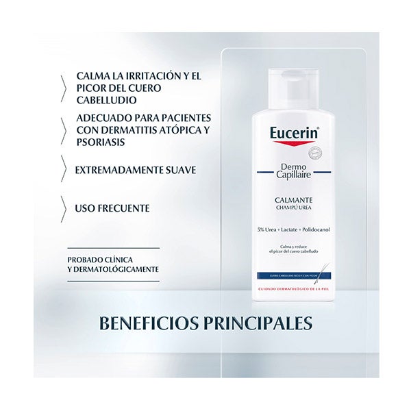 Eucerin DermoCapillaire CHAMPÔ UREA é especificamente projetado para situações em que ocorre couro cabeludo seco e com coceira.