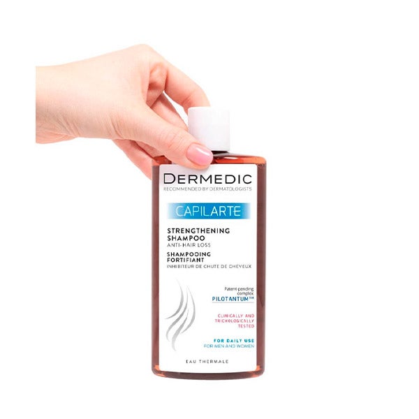 CAPILARTE Shampoo antiqueda fortalecedor previne a queda do cabelo de diversas etiologias recomendado para uso diário contínuo, tanto para pessoas com cabelo geneticamente fraco, fino ou com tendência à queda, como para pessoas com enfraquecimento temporário do cabelo e queda causada por fatores não genéticos. Recomendado como continuação do tratamento CAPILARTE de estimulação do crescimento capilar.