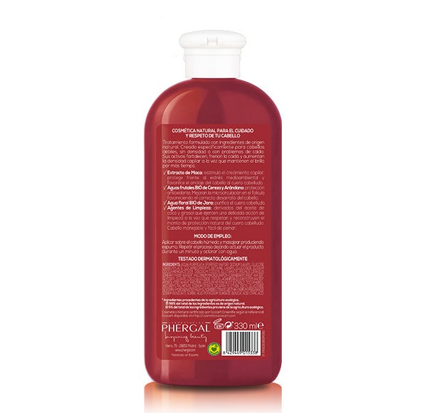Con Extracto de Maca, Aguas frutales de Cereza y Arándano, Agua floral de Jara y Aceites de Coco y Girasol.