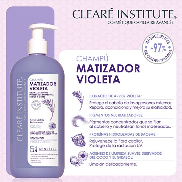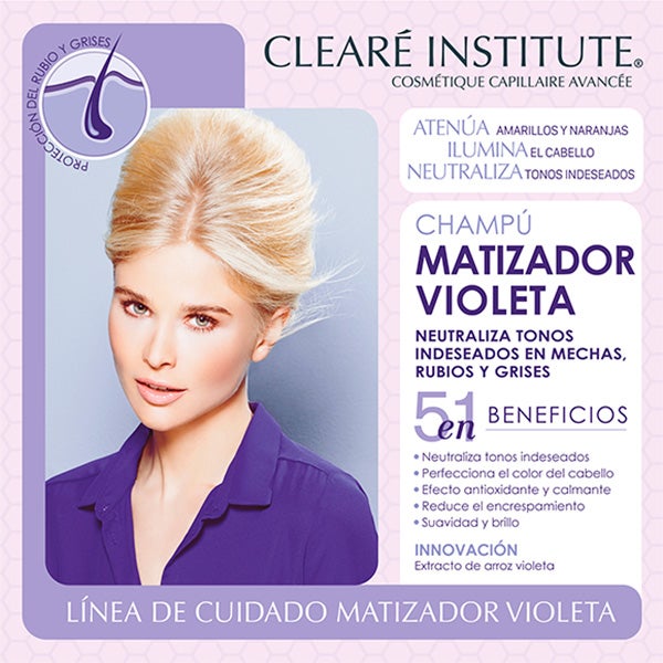 O Shampoo Matizador Violeta do Clearé Institute, é um tratamento que atenua os tons amarelados e ilumina o cabelo, eliminando tons indesejados.
