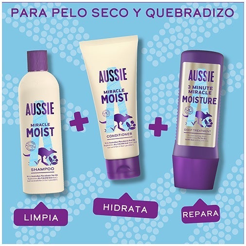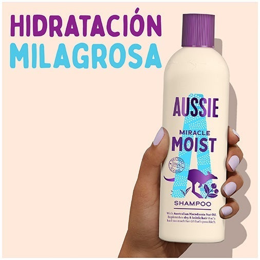 Experimente a coleção Miracle Moist. Calma a sede do seu cabelo com o Shampoo Hydrate da Aussie. O Shampoo hidratante da Aussie revitaliza completamente o cabelo extremamente seco. Com óleo de noz de macadâmia australiana, hidrata profundamente o cabelo seco.
