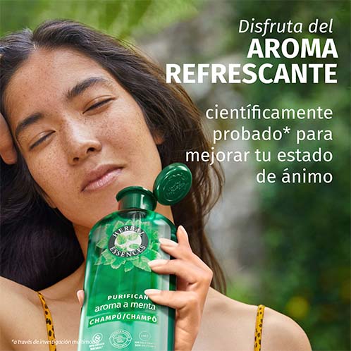 Comece sua rotina com a força da natureza. Herbal Essences Shampoo Purificante com Aroma de Menta oferece uma limpeza intensa e refrescante. Desfrute da sensação de vitalidade graças ao refrescante aroma de menta. Ao misturar nutrientes de origem vegetal infundidos com essência de menta da Índia, obtemos uma fórmula vegana e sem silicones que deixará seu cabelo reluzente. Desperte seus sentidos com esta mistura leve e desfrute dessa frescura pura e vitalidade mental
