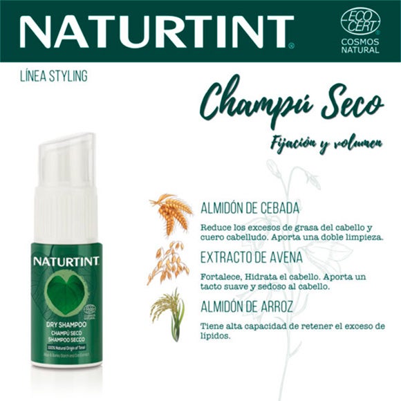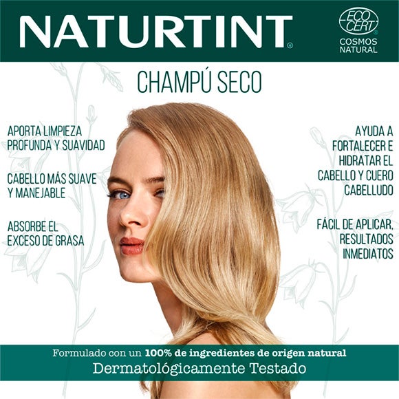 Shampoo seco com Certificação Ecocert formulado com um 100% de ingredientes de origem natural.
