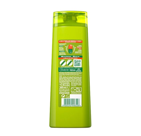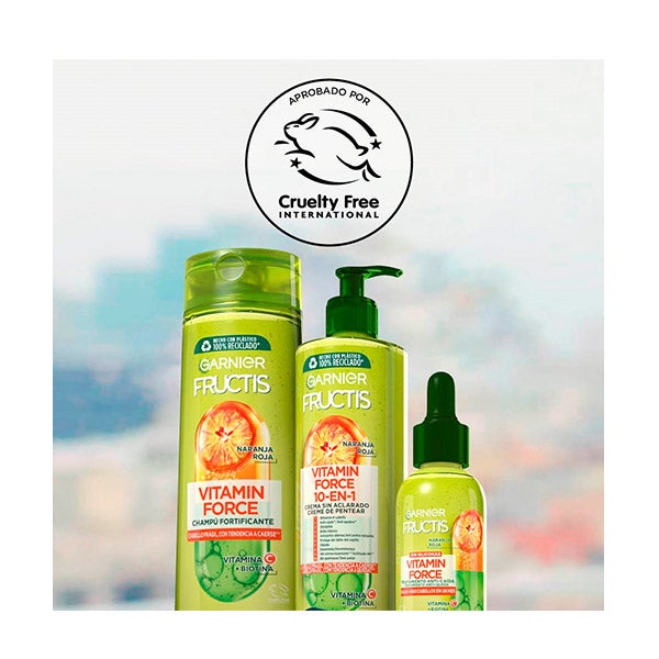 Garnier Fructis Vitamin Force Shampoo com Laranja Vermelha, Vitamina C e Biotina para cabelo com tendência a cair. Fortalece o cabelo da raiz às pontas e reduz a queda de cabelo por quebra.