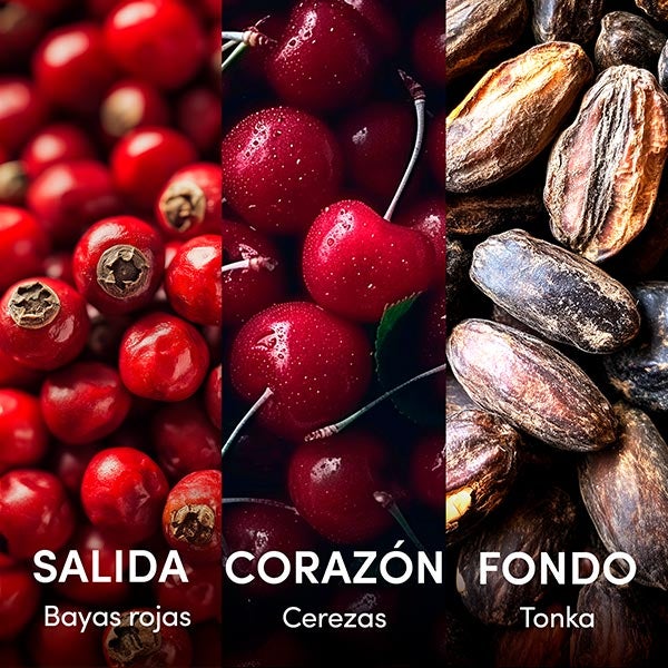 Esta deliciosa névoa é uma mistura harmoniosa que celebra a generosidade da natureza com notas de frutas vermelhas ácidas, cereja ácida e tonka amadeirada.