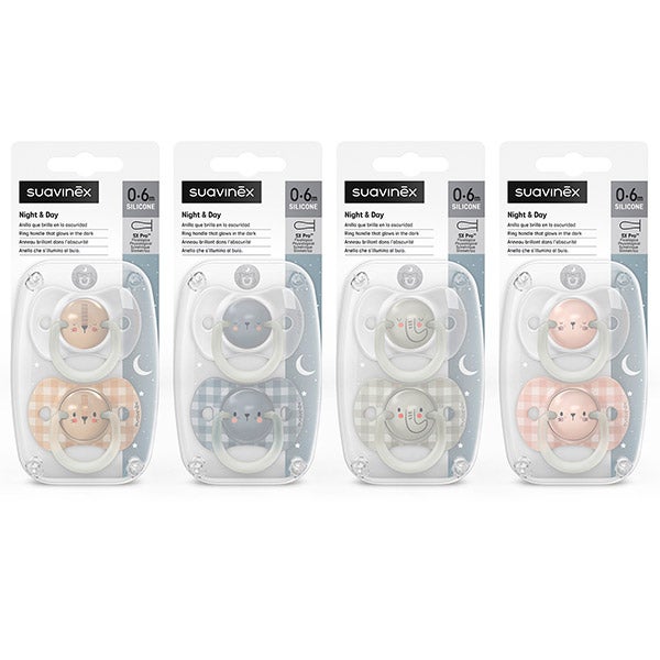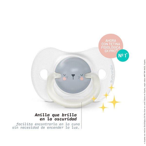 Chupeta noturna com tetina fisiológica SX Pro de silicone, para bebês de 0-6 meses.