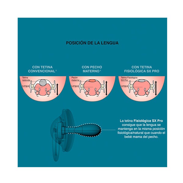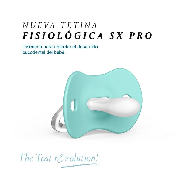 A nova tetina Fisiológica SX Pro está pensada para não invadir a cavidade oral e proporcionar ao bebê a mesma sensação que experimenta em seu estado natural/fisiológico quando não usa chupete. Tetina recomendada 100% pelos pais.