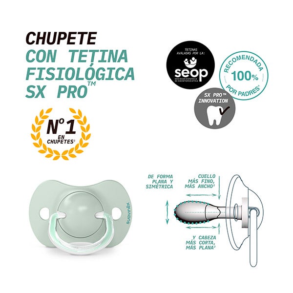 Criada levando em conta as particularidades bucodentais do bebê, cujo maxilar e mandíbula estão em pleno desenvolvimento. O Bico Suavinex SX Pro é Avaliado pela Sociedade Espanhola de Odontopediatria e recomendado pela Associação Italiana de Especialistas em Ortodontia.