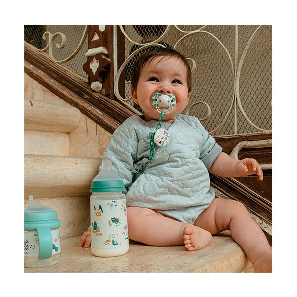 · Silicone fino ultra-suave com acabamento jateado: Imita em textura e consistência o mamilo materno, conseguindo a máxima calidez e um movimento super flexível que adapta o bico à cavidade palatina.