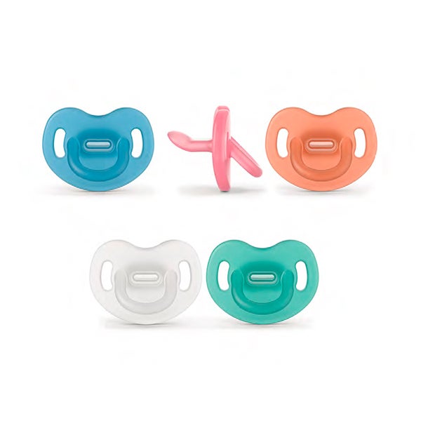 O mais parecido a não usar chupete. Desenhado para respeitar o desenvolvimento bucodental do bebê.
