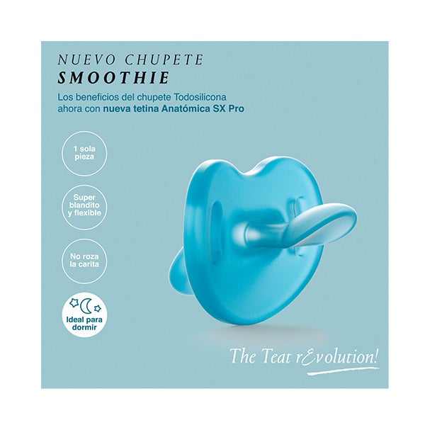 Novo chupete smoothie todo silicone com a nova tetina anatômica SX Pro para bebês 6-18 meses.