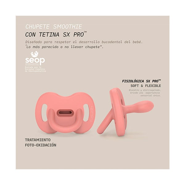 O Bico Suavinex SX Pro é Aprovado pela Sociedade Espanhola de Odontopediatria (SEOP). Chupeta com tratamento de Foto-Oxidação, minimiza a adesão de fiapos e partículas de sujeira à chupeta, para uma maior higiene.