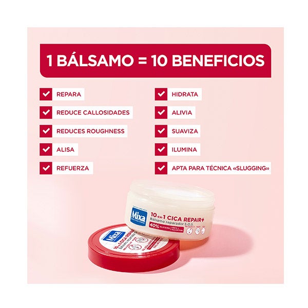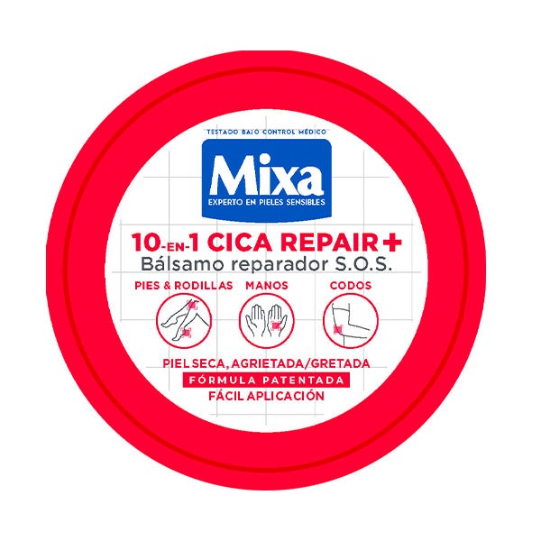 Mixa Cica Repair+ 10 em 1 Bálsamo reparador para peles rachadas e ásperas, com 40% de [glicerina, ureia e alantoína]. Adequado para rosto e corpo, hipoalergênico, 150 ml