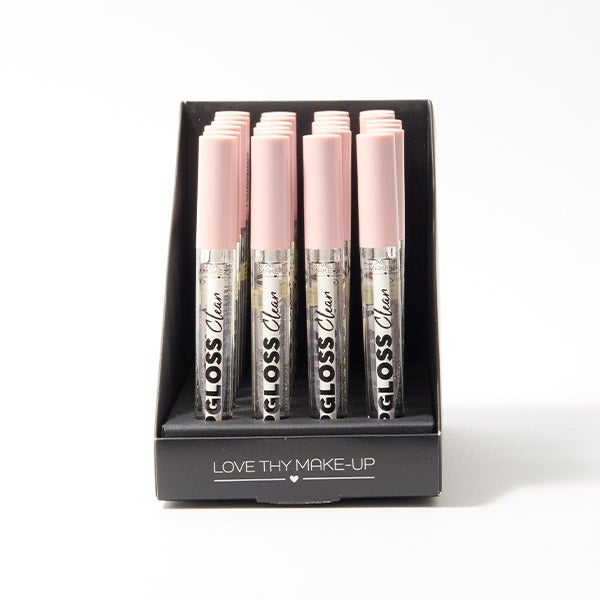 Brilho labial transparente com aplicador de varinha. Um essencial de maquiagem.